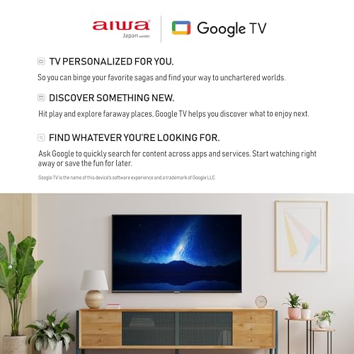 Aiwa 108 cm (43 inches) 4K Ultra HD | Google TV | Smart TV | Built-in Apps | Magnifiq Series Bezel-Less | 60 Hz | 2 GB RAM | 16 GB Storage | Dolby Digital+ | Signature Sound | AS43UHDX1 GTV