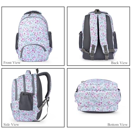 amazon basics Lightweight Polyester 4 Compartment 32L Backpack (Floral Print) Durable,Comfortable & Stylish Multiple Compartments & Side Pockets for Organized Storage|Ideal for School,College & Travel