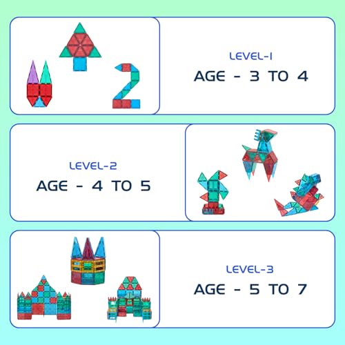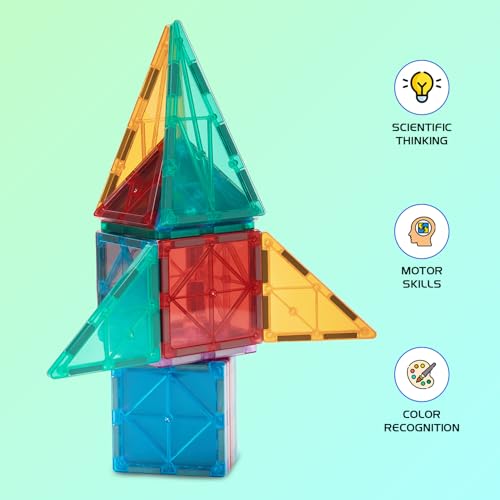VIBRANT BUILDING EXPERIENCE: Unlock endless creative possibilities with magnetic tiles in various shapes and mesmerizing translucent colors that shine in the light.