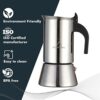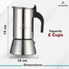 Atlasware Stainless Steel Mocha Design Coffee Maker | Induction, Gas, Hot Plate Compatible | Compact BPA Free Espresso Filter Coffee Black Tea Pot Percolator for Home, Kitchen, Travel (Silver, 6 Cup)