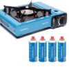 5. Gas Cartridges Included for Convenience – Comes with 4 x Campingaz CP250 valve butane cartridges (220 g each; size 6.9 x 18 cm); packed with a handy carry case for camping trips and travel.