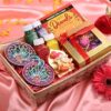 The Package contains-Box of handcrafted chocolates+2 Diwali diya+4 jars of rangoli colours(50 gms each)+Ganesha murti+Diwali greeting card.
