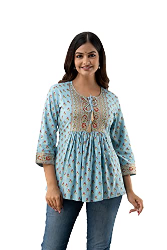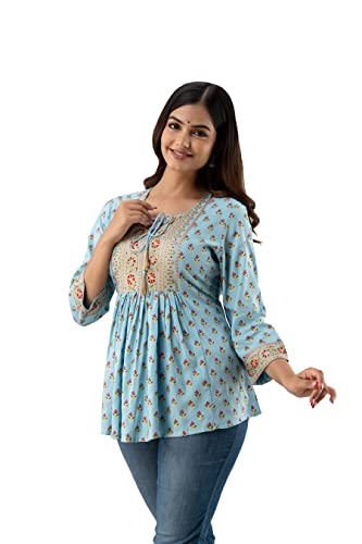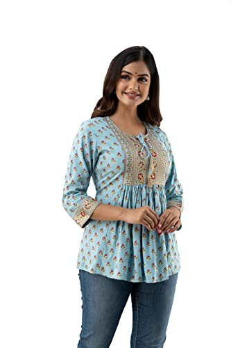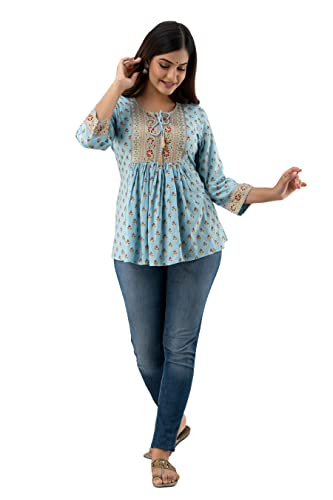 DMP FASHION Women Rayon Classy Printed Top(Aqua).