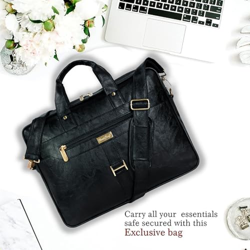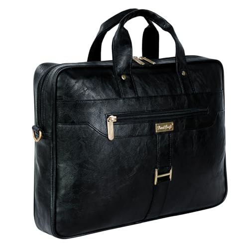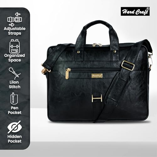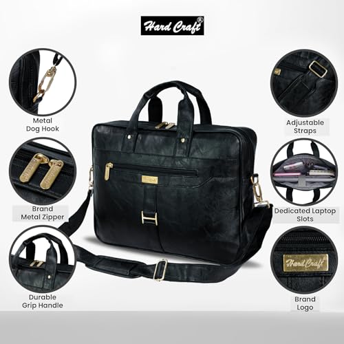 Hard Craft PU Leather Formal Office Sleeve Bag For 15.6 inch Laptop MacBook INoteBook Notepad Tablets Crossbody Briefcase Messenger Bag for Men Women With Detachable Shoulder Straps (Black)