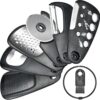✅ 【6-PIECE KITCHEN GADGET SET 】Discover our 6-pieces kitchen gadget set, perfect for camping. Including a cheese grater, peeler, pizza cutter, bottle opener, garlic/ginger grinder and herb stripper.