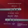 Connectivity: Wi-Fi 6, 802.11ax 2×2 Wi-Fi + Bluetooth 5.3 | Security: TPM 2.0 | Touch style fingerprint reader on smart power button | Physical Locks: Kensington Nano Security Slot | Laptop Design: Dual tone, 180 Degree Hinge | Weight: 1.7 kg
