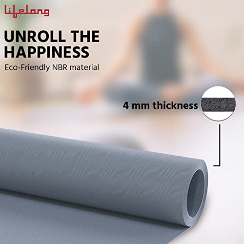 Lifelong LLYM92 Yoga mat for Women & Men EVA Material 4mm Grey Anti Slip for Gym Workout