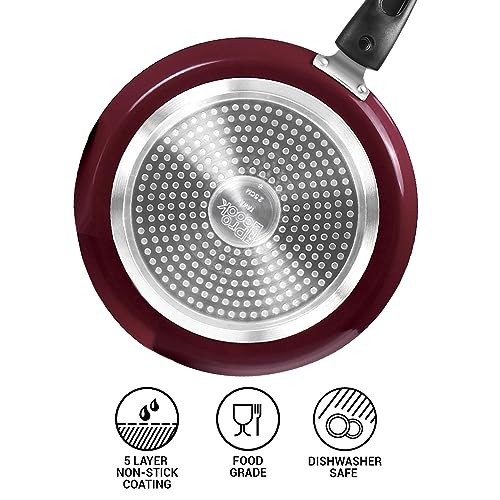 This is PFOA Free non-toxic and lightweight, you can enjoy food absolutely worry-free. It has 5 Layers of Non-stick coating which requires less oil. This kitchen set has Nylon ladle and Spatula for better serving and cooking