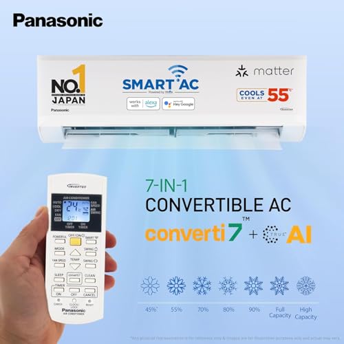 Panasonic 1.0 Ton 5 Star Premium Wi-Fi Inverter Smart Split AC (Matter Enabled, Higher Airflow, Copper Condenser, 7in1 Convertible, True AI, 4-Way, PM 0.1 Filter, CS/CU-NU12AKY5W, White)