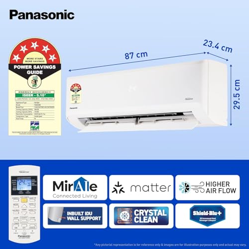 Special Feature: Premium Wi-Fi Inverter Smart Split AC, India’s 1st Matter enabled RAC powered by MirAie with 100% Copper Tubing helps in better heat exchange. True AI mode helps to maintain comfort conditioning & saves energy using “Adaptive Thermal Comfort Model”. Crystal Clean technology helps in enhancing the cooling performance, provides pure air and saves on electricity bills by self-cleaning of evaporator coils.