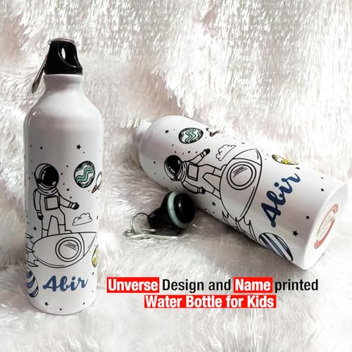 CAPACITY – 750 ML Metal – White With Printed Universe Design With Name | Return Gifts | Birthday Return gifts