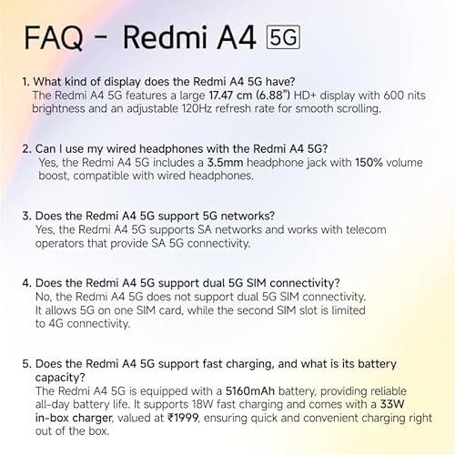 Redmi A4 5G (Starry Black, 6GB RAM, 128GB Storage) | Segment Largest 6.88in 120Hz | 50MP Dual Camera | 18W Fast Charging | Charger in The Box