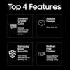 Smart TV Features: Tizen OS Smart TV | Web Browser | SmartThings Hub / Matter Hub / IoT-Sensor Funtionality | Apple AirPlay2 | Daily+ | Samsung TV Plus | Tap View | Wireless TV On | Sound Mirroring | Mobile to TV Mirroring | Works With AI Speaker (Alexa, Google Assistant) | Workspace | Nifty Gateway | Buds Auto switch | Workout Tracker | TV Key