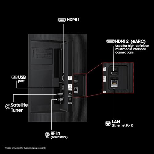 Seamlessly connect your devices with multiple connectivity options: Wi-Fi 5 for smooth streaming, Bluetooth for wireless audio devices, 2 HDMI ports (including HDMI eARC) for Set-Top Box/DTH and high-quality soundbars, Anynet+ (HDMI-CEC) for unified control, USB-A for media playback and external devices, Ethernet (LAN) for stable internet, and RF In for cable or antenna input. Stay connected and entertained effortlessly!