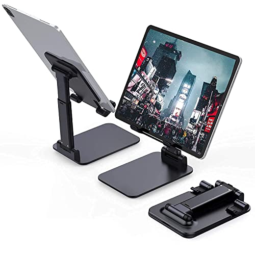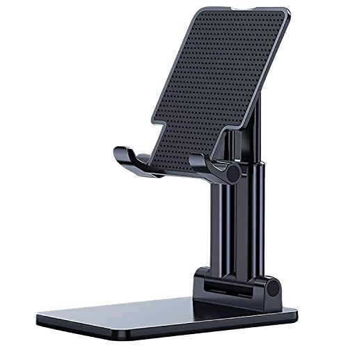 SYN SONS Desk Cell Phone Holder Foldable Mobile Phone Stand Holder -Angle & Height Adjustable Anti-Slip Compatible with Smartphones/iPad mini/Game/Kindle/Tablet Black (4-10″)