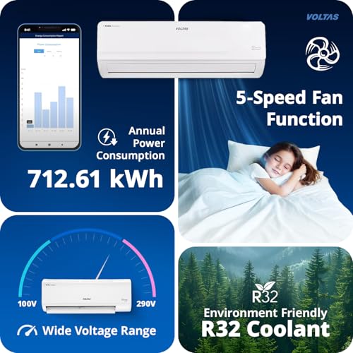 Voltas 1.4 ton 5 Star Inverter Split AC (Copper, 4-in-1 Adjustable Mode, Anti-dust Filter, 175V Vectra CAR, White)