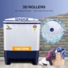 Drum / Pulsator type & Body material: The Roller Jet Pulsator rotates the clothes effectively & washes out every stain from the clothes, giving you the best washing performance while being gentle on the clothes. The roller case creates friction to effectively remove dust and mites. This technology propels detergent-rich water into every thread of the fabric. It also scrubs your clothes effectively, resulting in a better-quality wash | Body material: Plastic