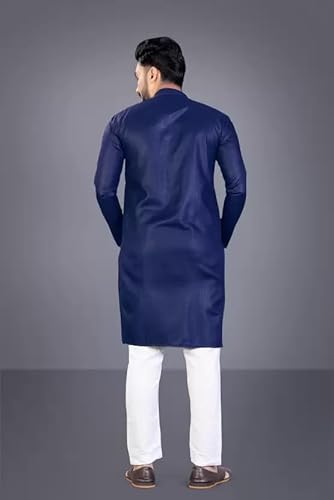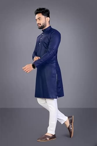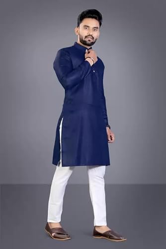 weltpocket Men’s Cotton Blend Solid Straight Kurta Pyjama (X-Large, Navy)