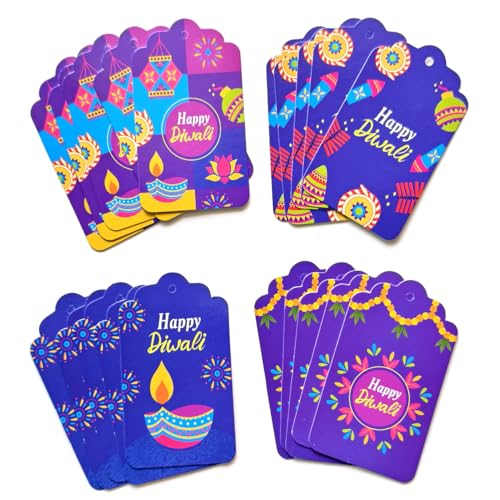 4 Vibrant Festive Designs – Each set includes 4 colorful Diwali-themed designs featuring diyas, firecrackers, flowers, rangoli, and lanterns, along with the cheerful greeting “Happy Diwali”. You get 5 tags of each design, totaling 20 tags in one pack.