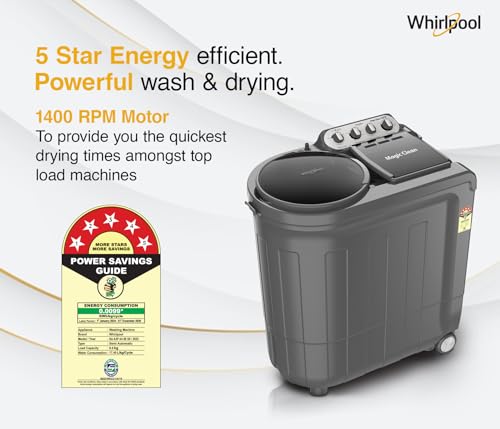 Whirlpool 8 kg 5 Star Semi-Automatic Top Loading Washing Machine (MAGIC CLEAN 8.0 GREY DAZZLE,2x Drying Power)
