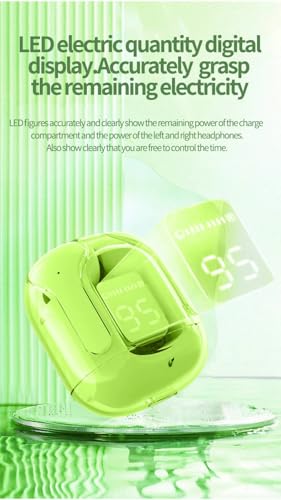 Wireless Bluetooth Earbuds with LED Display Case – Dual Mic ENC Noise Cancelling, 20H Battery, Ultra-Light 3.5g, Waterproof, Touch Control, in-Ear Stereo Earphones – Green