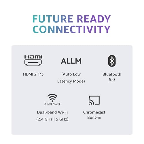 Connectivity: Dual Band Wi-Fi | 3 HDMI ports to connect latest gaming consoles, set top box, Blu-ray Players | 2 USB ports to connect hard drives and other USB devices | ALLM | eARC | Bluetooth 5.0 | Optical | Ethernet