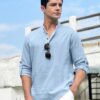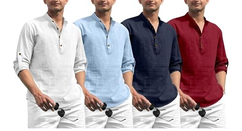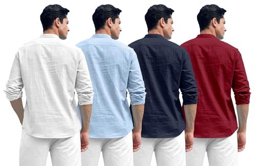 Zombom Combo of Men’s Solid Cotton Blend Full Sleeve Mandarin/Chinese Collor Straight Kurta Shirt (Pack of 4)