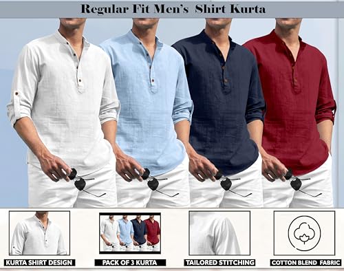 Fabric :- Cotton Blend Men’s Kurta || Pattern :- Solid Kurtas for men || Length Type :- Hip Length Kurta || Fit Type :- Regular Fit || Coller :- Mandarin/Chinese collar || [ PACK : 4 KURTA ]